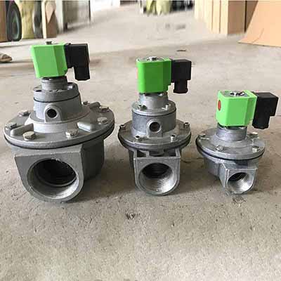 電磁脈沖閥的特征是閥的空氣進(jìn)出口管呈90度直角。閥內(nèi)的膜片把脈沖閥分成前、后兩個(gè)氣室,高壓氣從進(jìn)氣口接入,進(jìn)入下氣室,當(dāng)脈沖閥未得電時(shí),氣體通過(guò)上下兩殼體的恒壓管道以及其中的節(jié)流孔進(jìn)入減壓室,由于閥芯在彈簧的作用下堵住泄壓孔,氣體不會(huì)排出,令減壓室和下氣室的壓力一致,而在彈簧作用下,膜片將噴吹口堵住,氣體不會(huì)沖出。當(dāng)脈沖閥得電時(shí),閥芯在電磁力作用下向上抬起,泄壓孔打開,氣體噴出,由于恒壓管道節(jié)流孔的作用,泄壓孔的流出速度大于減壓室恒壓管氣體的流入速度,令減壓室壓力低于下氣室的壓力,下氣室的氣體將膜片頂起,打開噴吹口。