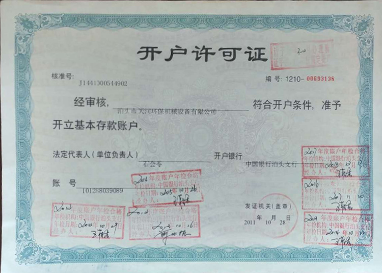 除塵器布袋骨架|除塵器濾袋-公司資質 -泊頭市天潤環保機械設備有限公司
