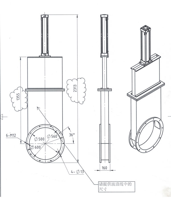 氣動方形插板閥的尺寸: