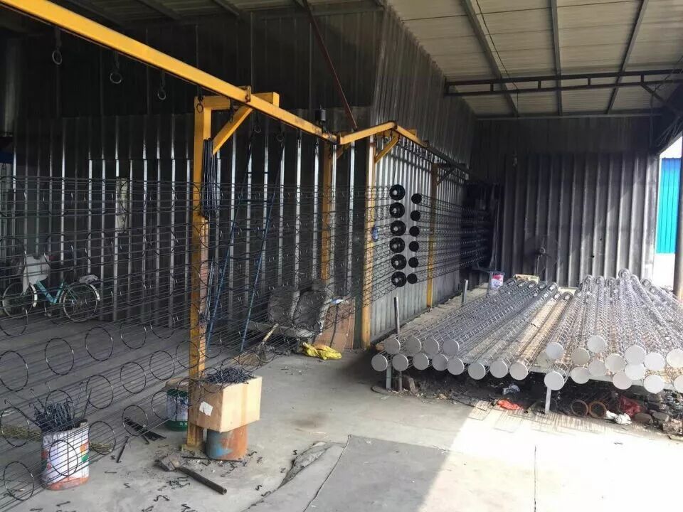 噴塑的技術(shù)原理: 使用電暈放電使粉末涂料吸附在骨架上的。其流程是:粉末涂料由供粉系統(tǒng)借壓縮空氣氣體送入噴嘴,在噴嘴前端加有高壓靜電發(fā)生器發(fā)生的高壓,因?yàn)殡姇灧烹姡谄溧徑l(fā)生密集的電荷,粉末由嘴噴出時(shí),形成帶電涂料粒子,它受靜電力的作用,被吸到與其_性相反的骨架上面,隨著噴上的粉末增多,電荷積累也越多,當(dāng)?shù)竭_(dá)厚度時(shí),由于產(chǎn)生靜電排斥作用,便不持續(xù)吸附,從而使整個(gè)骨架厚度達(dá)到0.1mm的粉末涂層,然后經(jīng)過高溫使粉末熔融、流平、固化,即在骨架外表構(gòu)成堅(jiān)硬的涂膜,從而達(dá)到表面防腐處理。
